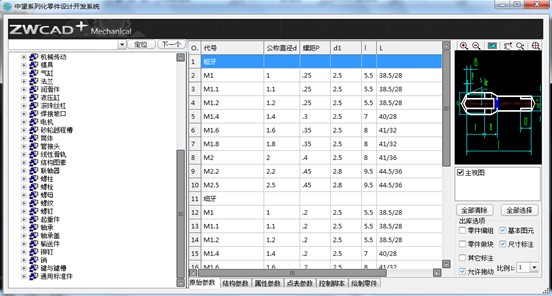1、零件库涵盖了45个大类,2500多种零件,所有零件包括的规格也都一一列入,根据最新的国标标准逐步更新。
