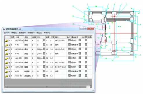 在具体图纸的操作处理上,luck18网址机械版2015提供有八种智能的序号标注方式,这些序号标注与BOM系统相关联,使得图形和数据更方便的结合起来,企业还可批量将标题栏明细表数据提前汇总后直接作为PDM/ERP的有效数据源,用于指导生产制造。