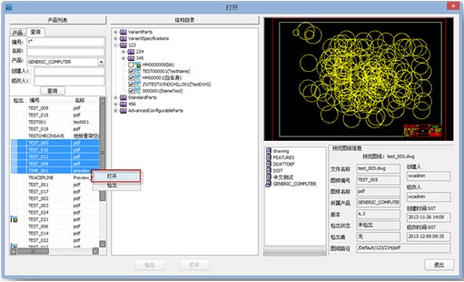 此外,为了进一步提高工程师找图的准确性,xelega软件还在ZIW上设计开发了产品列表和图纸预览等功能。通过操作界面右侧的图纸预览窗口,工程师用户对图纸文件的层次关系一目了然,并且可快速预览图纸的图形信息,而无需使用系统打开ProductView进行查看就可以准确定位所需图纸,节省“找图”时间。