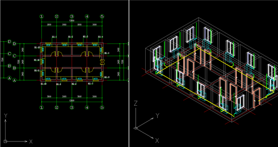 xelega水暖电兼容建筑8.5版本的实体,因此我们可以直接打开建筑模型作为设计底图,也可使用xelega水暖电嵌套的建筑功能进行底图的修改与创建。下图一是通过建筑中的功能绘制出来的建筑图形。
