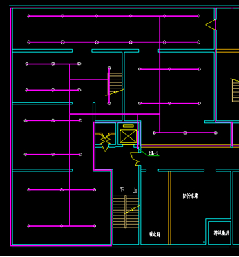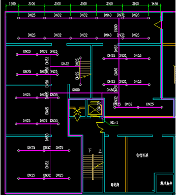 使用CAD软件上的管线菜单中的“立管布置”功能,采用“墙角布置”快速布置喷淋立管。当立管布置好后,绘制干管将立管和支管连接起来,设计师在“绘制管线”的时候不需要选择管线类型,只需要点击一下立管,系统会自动跳到相应的管线类型,非常智能。