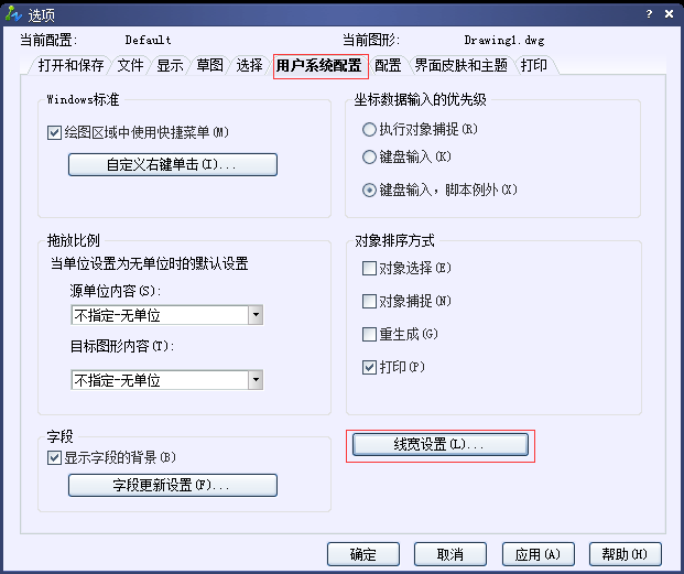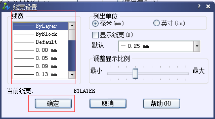 工具——选项——用户系统配置——线宽设置——选择需要的线宽——确定,如下图所示