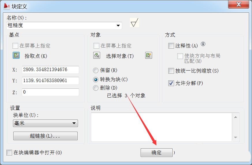 8、全部设置好之后就点击确定就可以了。块就创建好了。