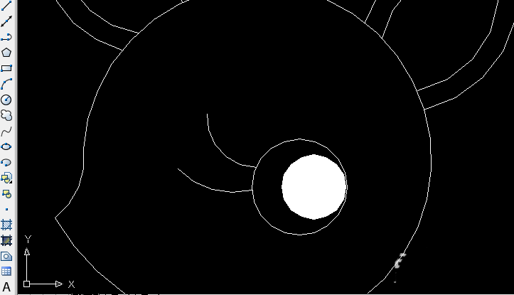 5、在大圆里面画两个小圆,将最小的一个填充颜色,再画两段圆弧为眼睫毛,图案填充在“绘图”选项中的“图案填充”命令。如图所示