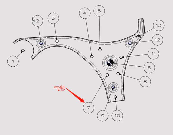 1) 这是2D工程图里面生成“注释”表时一同生成的气泡标注