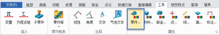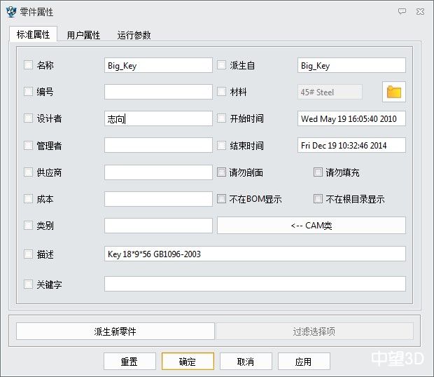 3. 重复1、2步骤,就可以为所有零件写入制定的标准零件属性。