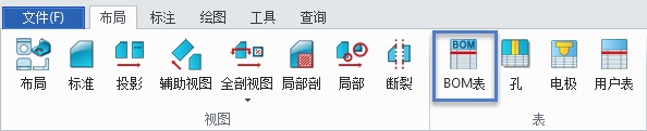 4. 激活回到总装配,创建工程视图,并且使用BOM表命令。