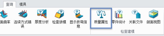 1. 假如要写入零件重量,必须要对零件进行质量计算。在总装配中,激活指定的零件,使用 查询->质量属性。