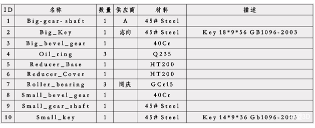 图:减速箱BOM表示例