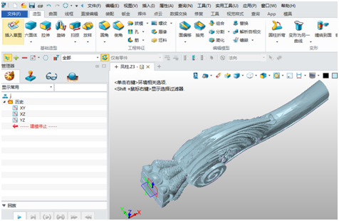 三维CAD中的STL文件格式最早由美国的3D System 公司推出,具有格式简单,跨平台性良好等优点,广泛应用于快速成形、CAM加工、逆向工程等领域。但是,不是所有三维设计软件的所有功能都支持该文件格式。因此,三维设计软件xelega3D2015版全新推出了支持STL文件的5轴CAM加工,以便三维CAD工程师简单方便地编辑和修改相关文件。下面就以凤柱为例来介绍xelega3D STL文件的5轴CAM加工: