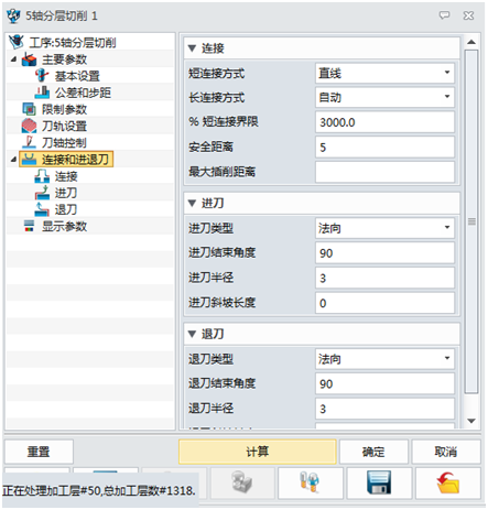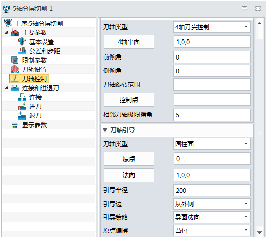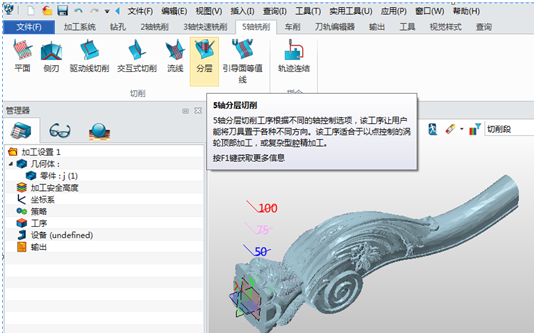 第三步 :选择加工工序,进入加工界面后选择5轴分层切削(如图4)。
