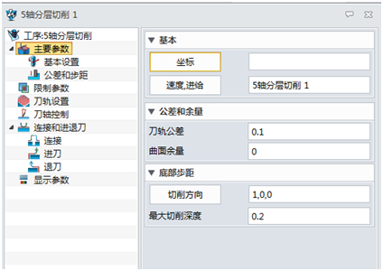 首先,设置刀轨公差0.1MM,切削深度0.2MM,切削方向为(1,0,0)(如图6),其余用默认参数。