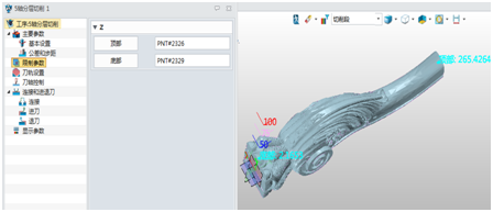 其次,设置加工范围(如图7)选择2个限制点即可,其余用默认参数。