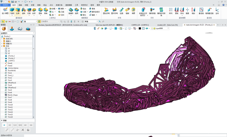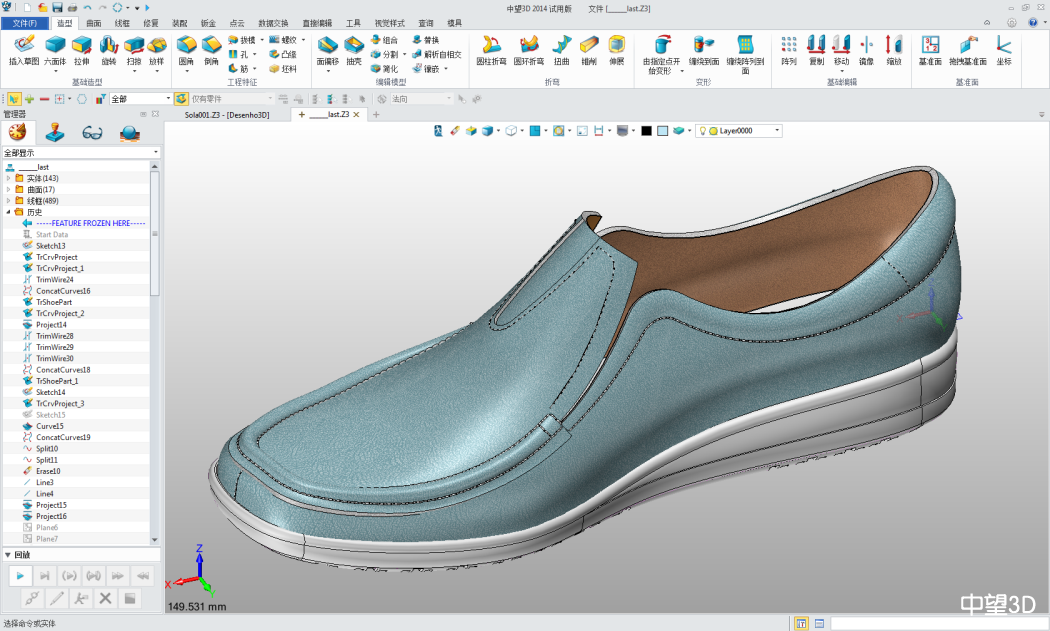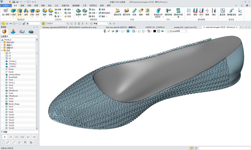 作为一款三维CAD设计软件,xelega3D拥有独特的混合建模技术,非常灵活自由的在实体曲面之间进行任意的操作,无论在鞋底还是鞋面的设计中,都能快速高效的完成设计工作。