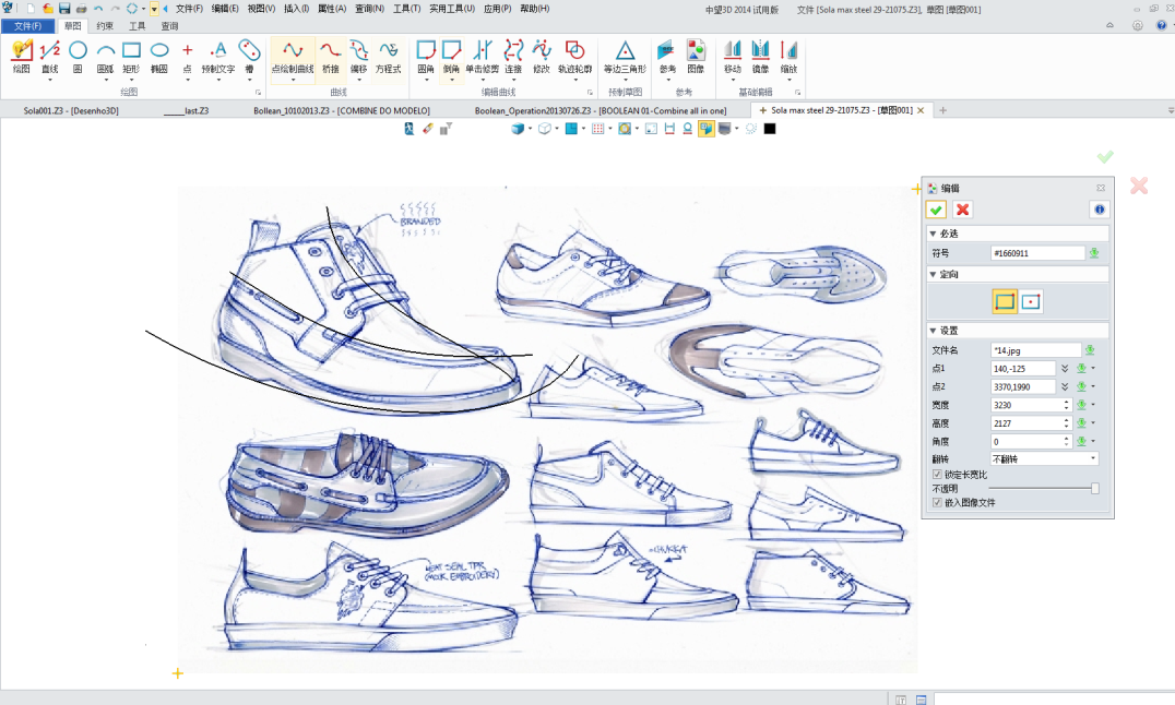 (1) 首先,xelega3D可以通过导入工业设计师的草图图片,在草图环境通过动态拖拽的方式,设置长宽高及图片的透明度,展开主要造型线条的绘制,从而创建实体或曲面。