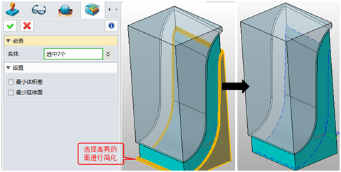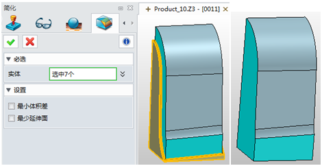4. 使用简化功能把减后的坯料多余部分简化掉。