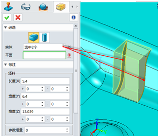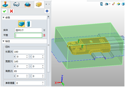 1. 使用坯料功能先创建一个坯料,选取两个侧面来确定坯料大小。