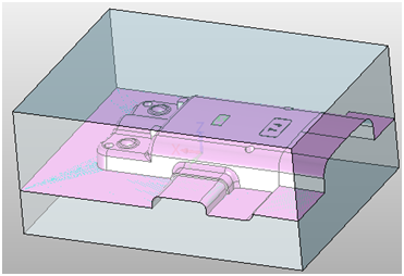 12. 使用组合功能用产品布尔减坯料,最后用分型面使用分割功能把坯料分割成前后模两部分。