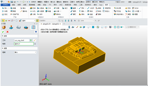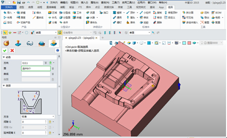 三维CAD模具设计,工程师使用xelega3D的模具设计模块,只需对已有的产品模型进行建立模具装配模型、设置收缩率、脱模斜度检查、区域定义、补孔、分型面设计、拆模等操作,就能够快速完成模具成型零件设计,最后通过模架系统及标准件的调入即可完成整体模具的设计。