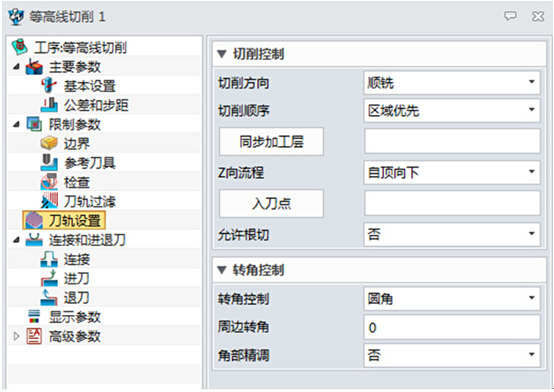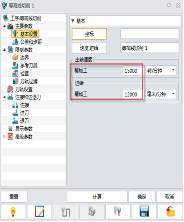 在xelega3D中,通过对以上几个等高线切削相关的参数进行设置,即可达到高速加工的效果。