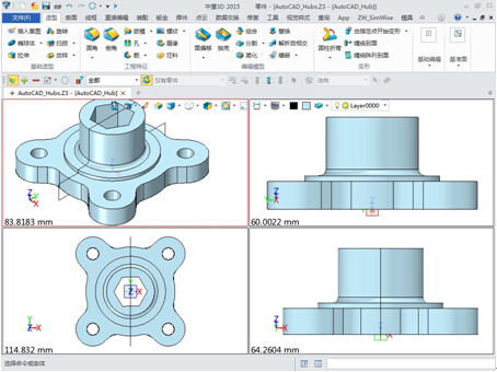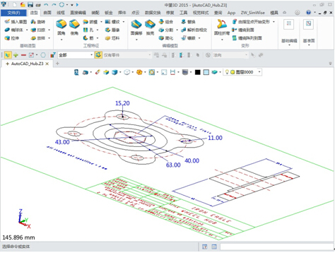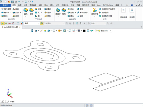 xelega3D作为国内专业高效的CAD/CAM一体化的三维CAD设计软件,能轻松、高效地满足客户在转型升级过程中,数据兼容、交互的需求。现在以二维CAD制作的图纸“Wheel Hub”为例,向大家介绍下xelega3D如何实现二维数据与三维数据之间的完美兼容、交互: