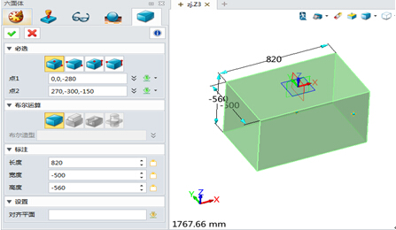 先绘制尺寸为820*500*560的长方体(图2),再用“边界曲线”提取出曲线(图3)。