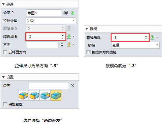第三步:退出草图后,设置相关参数,如图4所示。