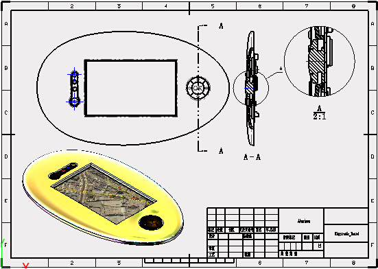 第十七步:在布局页码使用“全剖视图”命令,对圆形按钮处进行剖切(图19)。