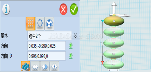 ,选择全部造型,输入方向如图,距离-175,数量5个,可得: