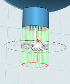 11、选择基本编辑,点击阵列,选择圆形阵列,点击先前拉伸造型,输入方向如图,数量50个,可得: