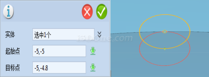 10、选择基本编辑,点击移动,将圆形移动到如图位置,再选择拉伸,输入距离10.可得: