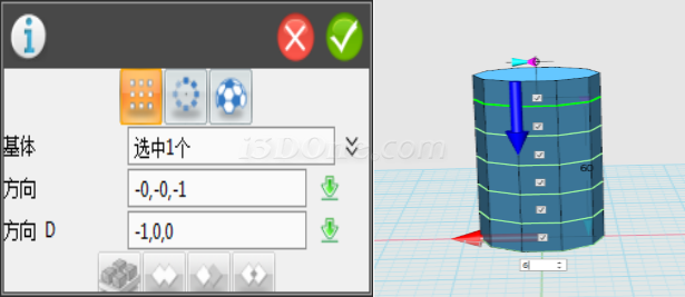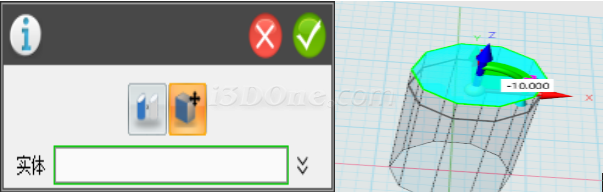 11、选中圆形,点击拉伸,输入高度-70,选择减运算,再按Delete,删除直线,中键确定可得: