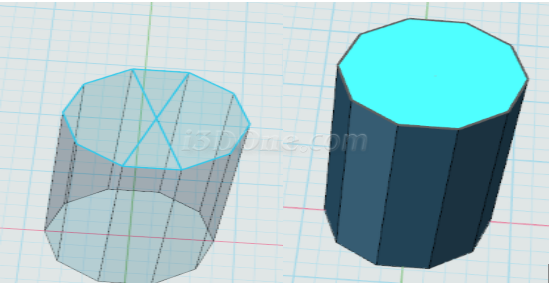 3、选择造型的上表面,点击草图绘制,选择直线,绘制相交两条直线,再点击正多边型,点击两线段交点,输入半径20,边数10,角度0,再按Delete,删除直线,可得: