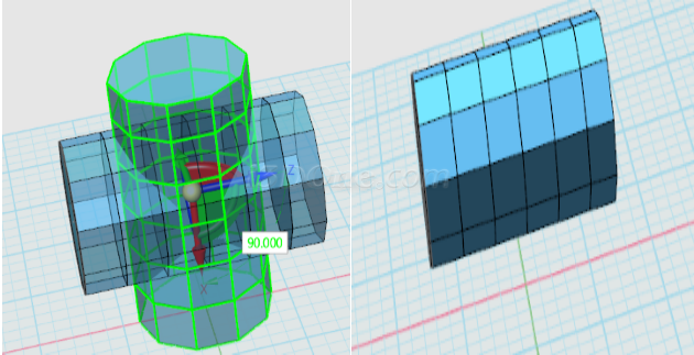 7、选中整个造型,选择基本编辑,点击移动,选择动态移动,拉动XZ转动命令,输入90,可得: