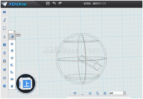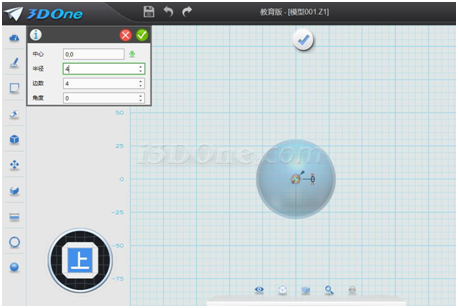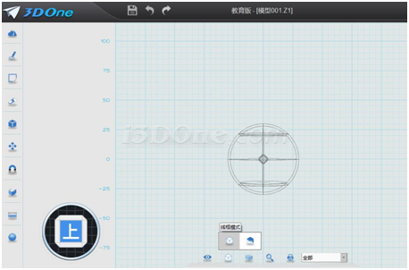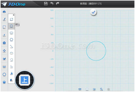 1.切换“上”视图,在中心点(0,0)画一个圆。