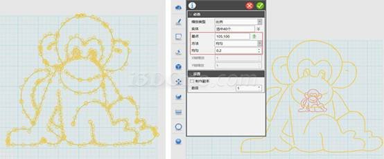放大草图,将草图中多余的线条剪掉得到猴子轮廓草图。(注意:因为草图必须是闭合曲线,修剪过程中可能会破坏一些原图,可以在草图上再进行补充以得到生动形象的图案。)
