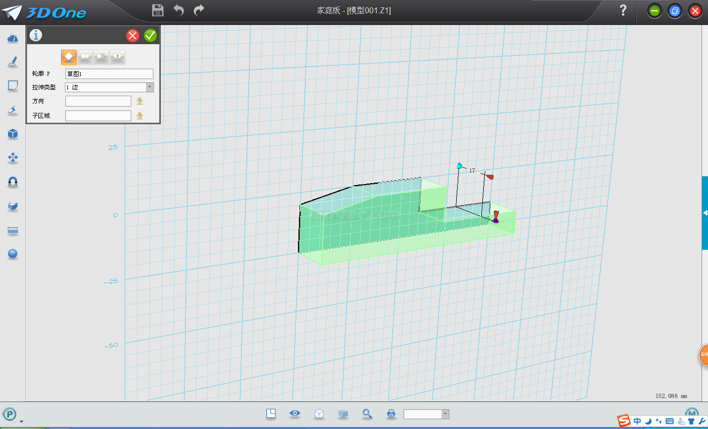 1.首先用草图编辑画出机身的大致轮廓,然后拉伸,输入拉伸距离17。