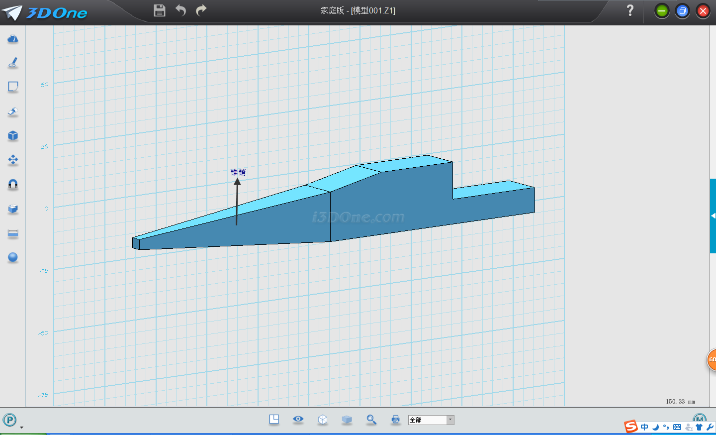 2.点击拉伸,选择左边长方形,输入拉伸距离80,再选择锥销命令,基准面选择最左边面,确定可得: