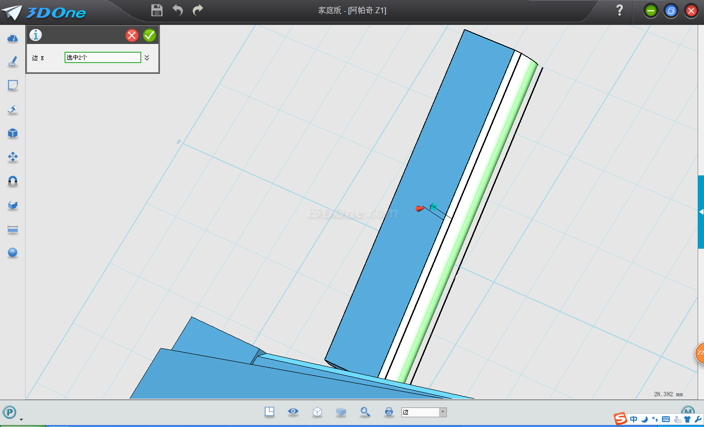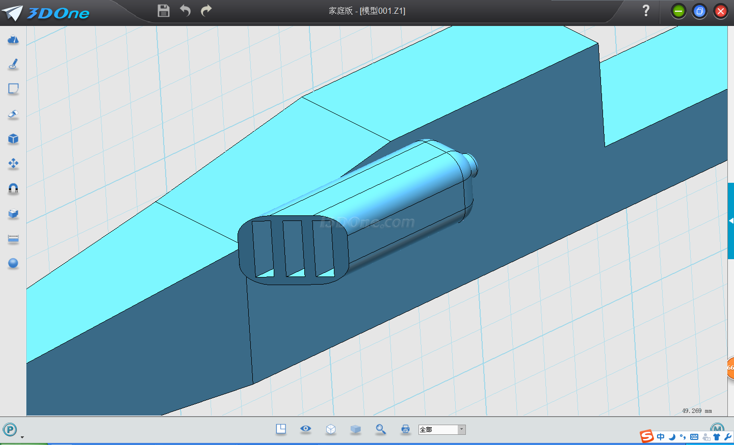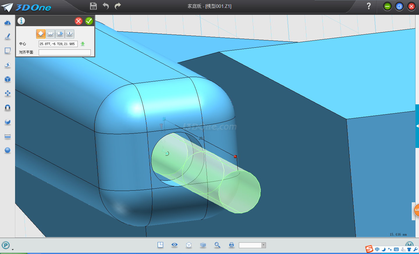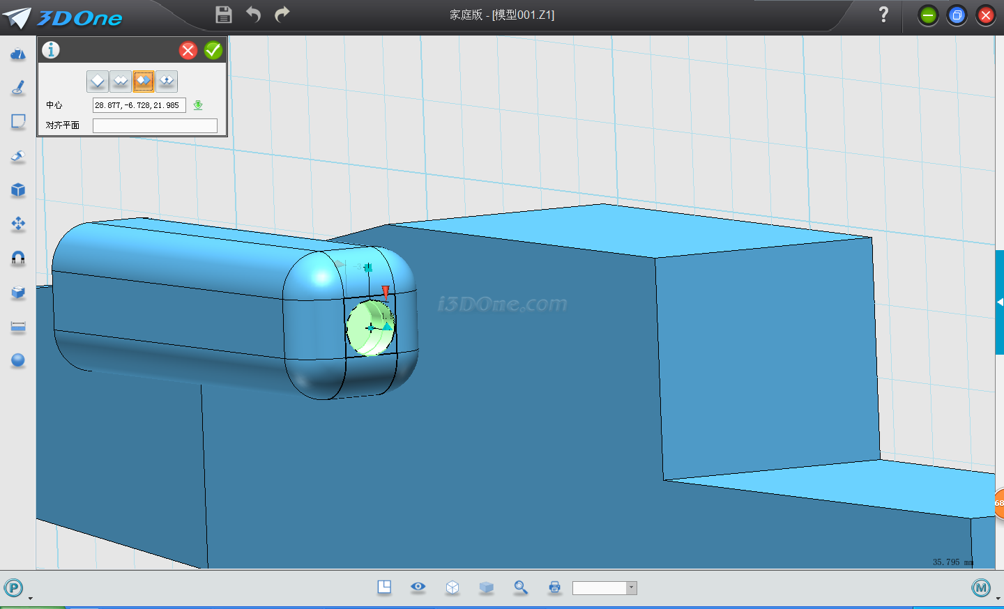 7.再点击拉伸,选择绘制圆柱的上表面,输入距离3.35,点击减运算。