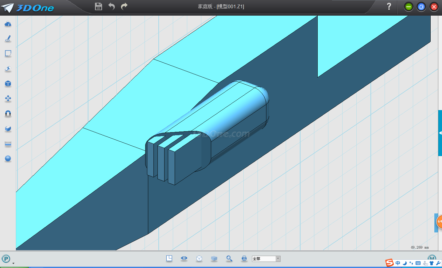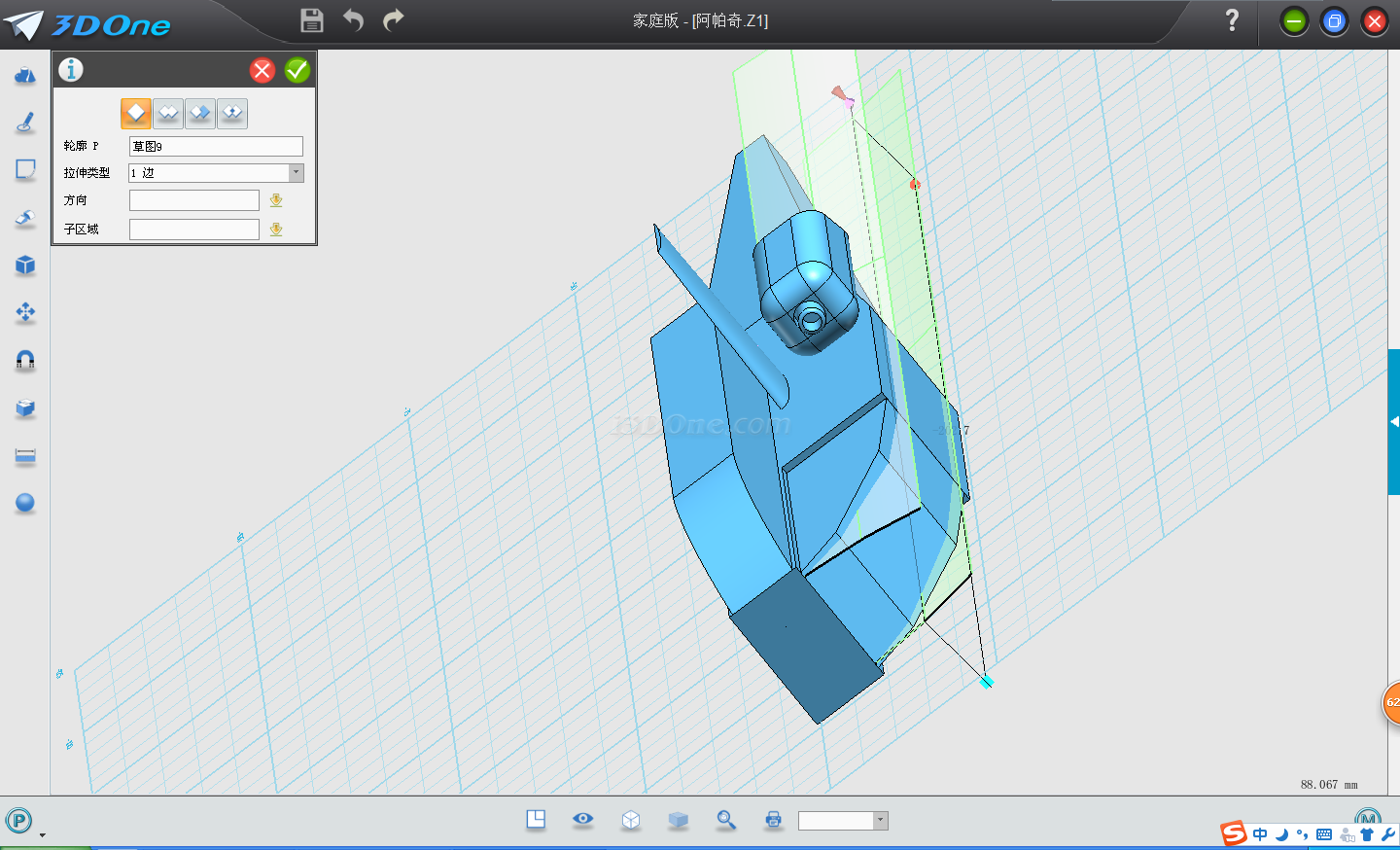 22.可见大致外形已经出来,因为左右两边的零件相同,在中间绘制平面,使用镜像使左右对称。