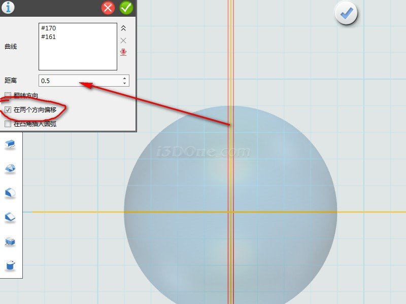 5.草图选择偏移工具,分别对刚才的两条直线进行偏移,数据如图。