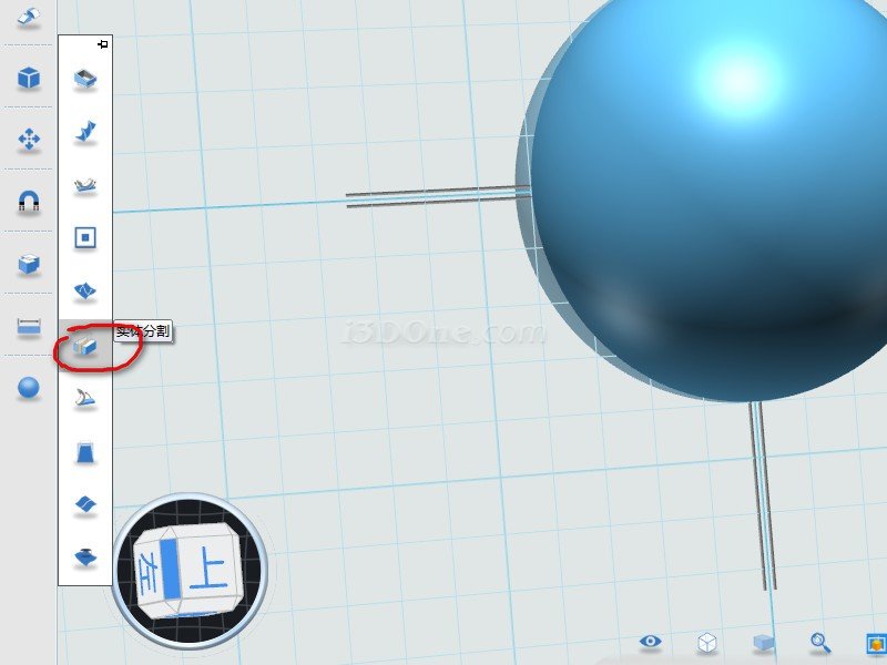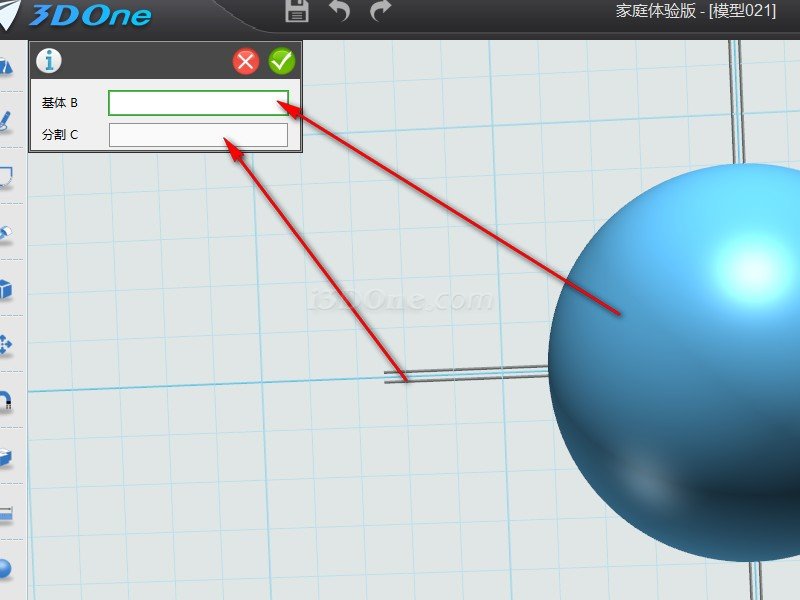 8.点击实体分割工具,基体b选择球体。分割体选择草图。