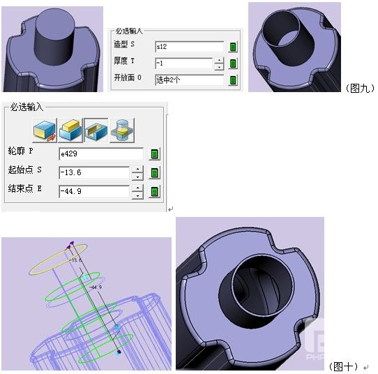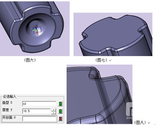 ,此例中瓶嘴厚度大于瓶身的抽壳厚度(图九)。