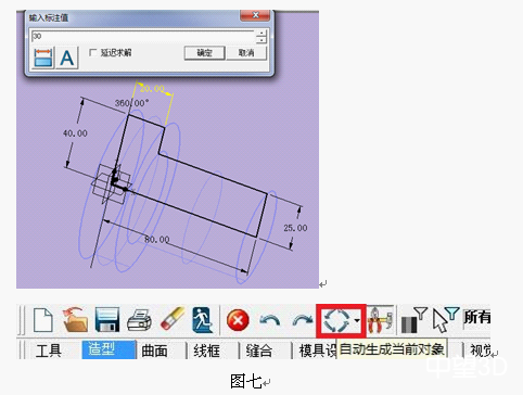 五、逐个修改除了尺寸为20以外的各个尺寸值,在出现的对话框中选择中红框所示“A”,在出现的变量对话框中,逐个设置尺寸值为40、25、80对应的变量为如图六所示: