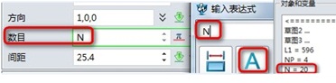 若需凹陷孔的个数跟随长度的变化而改变,则可以修改变量参数,如下图修改变量L1,则可以驱动凹陷孔横向数值。