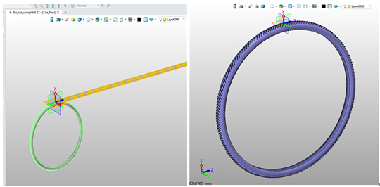 第三步:丰富且灵活的建模工具,帮助快速完成各种复杂设计:轮胎和轮毂,链条以及坐垫等。对于轮毂,应用了很多基础功能如拉伸,旋转等,同时也应用到了草绘中的样条曲线来快速的做成轮毂内部形状。而轮胎的建立过程相当的简单容易,因为xelega3D提供的的变形功能让人确实吃惊,迅速的将复杂的建模变成了一个及其简单的过程,让我们的效率大大提升: