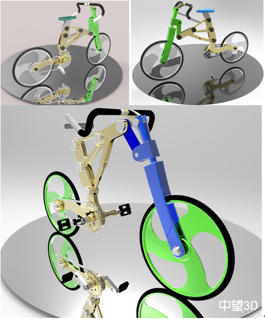 用xelega3D完成自行车的整体框架设计,然后造型设计,再装配动画,最后渲染。