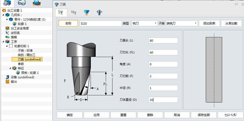 2,然后插入工序类型,选择轮廓切削(图3)。