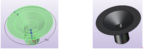 (4)画出吸附爪的草图用旋转命令完成,再用拉伸切除中间的通孔,见以下图4;