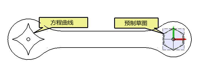 xelega3D的草图功能非常丰富,除了提供常规的图形设计及约束外,还可以直接调用系统事先定制好的“预制草图”,一些常规的草图图形只需点击即可绘制完成。对于那些不常用的草图图形,可以根据方程式快速绘制图形,及通过方程式组来轻松控制参数变量,几秒钟便能完成。另外,调整草图还可以通过拉伸、缩放等操作来轻松实现。